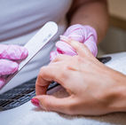 Übergänge der Nagelmodellage feilen. Nägel vorbereiten.